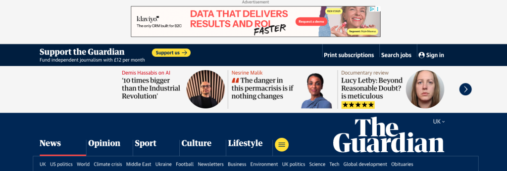 - Display Ads: Display Ads:Banner ads that appear on websites across Google’s Display Network, for example, on news sites like The Guardian or lifestyle blogs related to your industry. Ideal for staying visible to potential customers who may not be actively searching your services or products directly but are browsing related content.